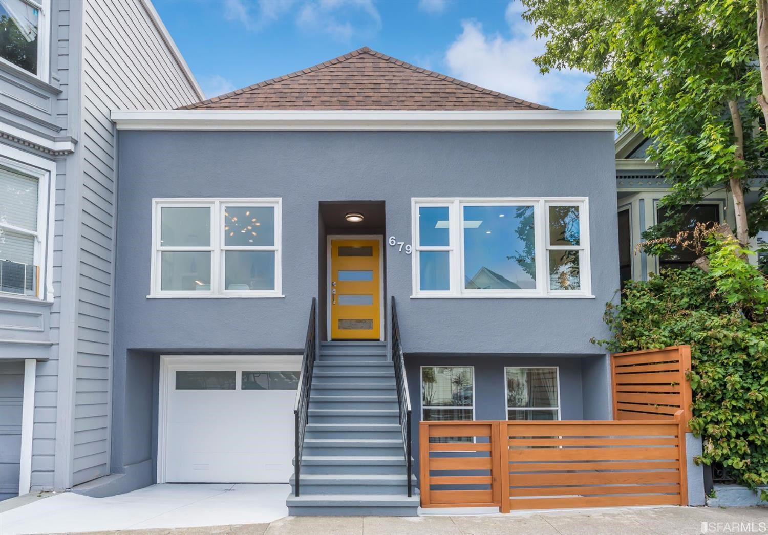 A charming, freshly painted Victorian facade belies a contemporary interior that checks all the boxes. A sitting room at the entrance opens into a spacious dining room perfect for hosting dinner parties or family gatherings. From here, enter the great room, with seating area, modern gas fireplace, contemporary eat-in kitchen and a classic white kitchen with marble countertops. A walk out deck leads down to a flat, landscaped yard with lawn and space to play. The upper floor offers the ideal 3-bed, 2-bath layout. The first 2 are interior-designer styled rooms, with wallpaper accents straight from a magazine. These rooms share an updated bathroom. The primary bedroom features a Carrara marble bathroom, walk-in closet, gas fireplace and walk out deck w/ sweeping views. The lower level has a media room and additional bedroom w/ ensuite bath. Interior access to the garage and a dedicated laundry area complete this Noe home.